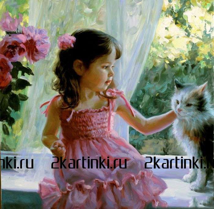 Спасибо Вам большое за такую красоту: и девочка очень красивая, и кошечка (но немного пришлось изменить "выражение лица" кошечки по просьбе сына) и добавила белый цвет(от другой картины) к светло-серому, чтобы шторы и подоконник лучше смотрелись. В остальных красках 100% попадание в цвет и соответствие фотографии на упаковке.